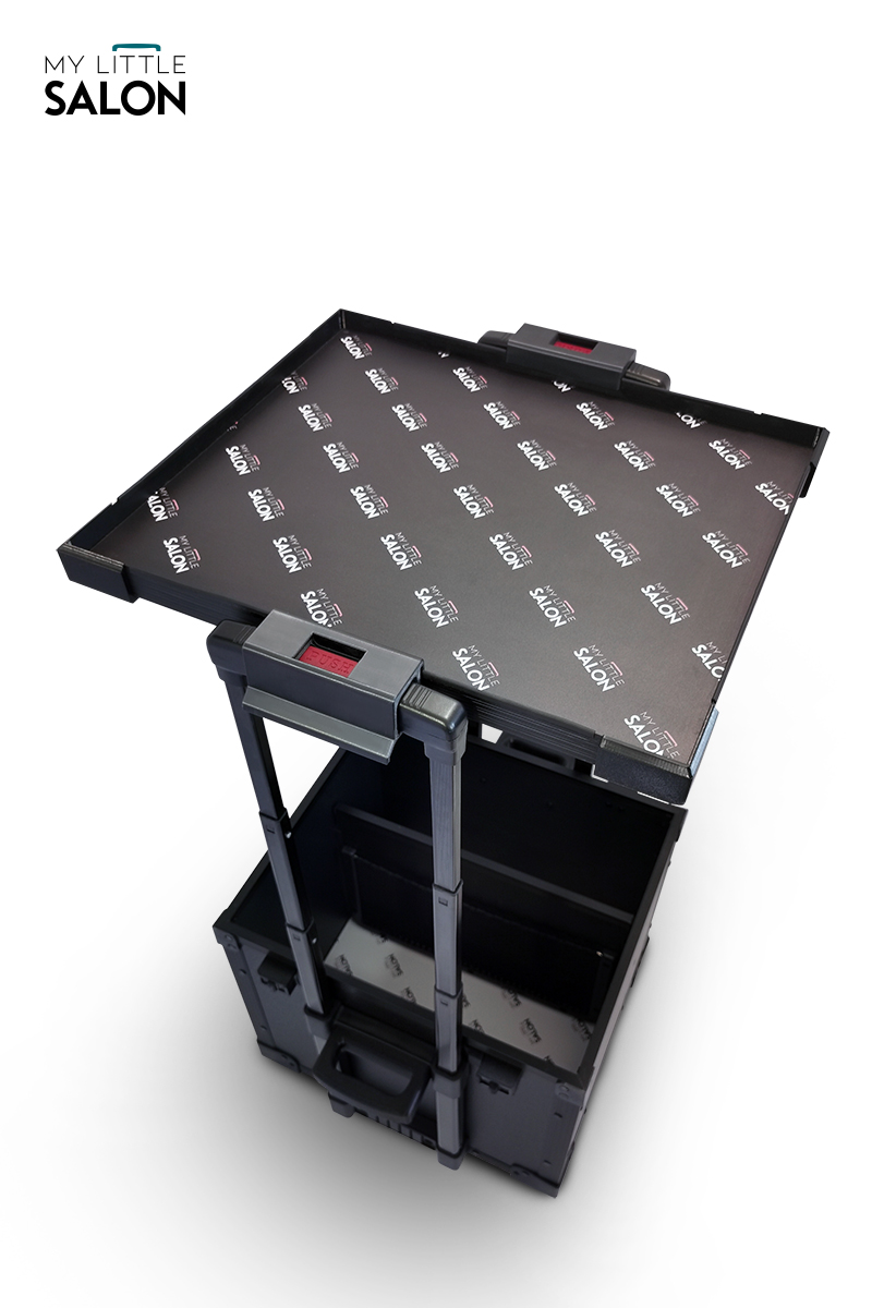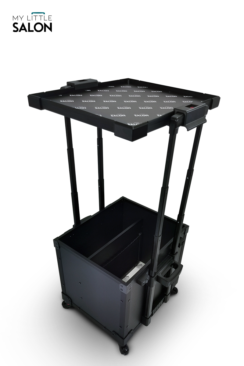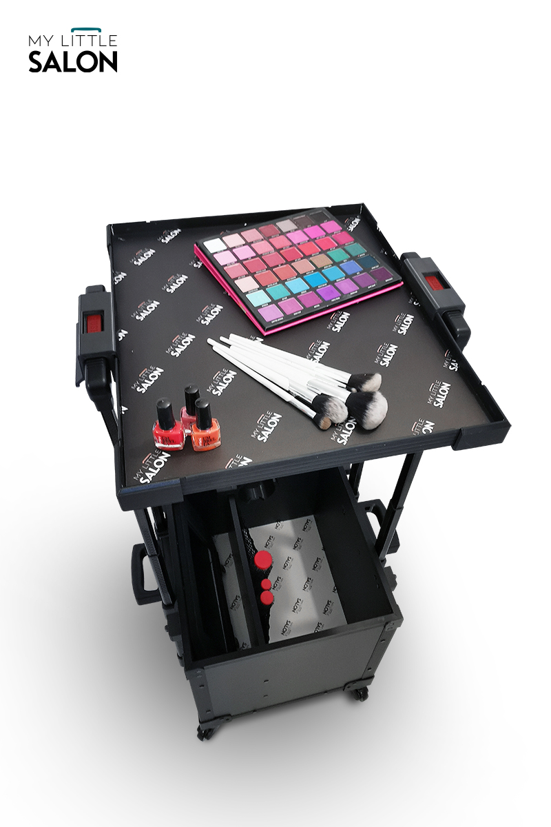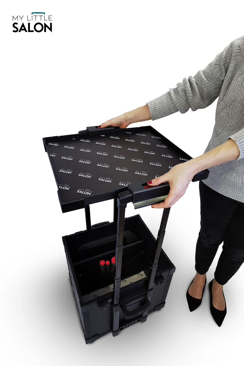À la fois espace de rangement, trolley et tablette de travail, il est plus qu’un simple matériel de transport… un véritable salon de beauté mobile !
