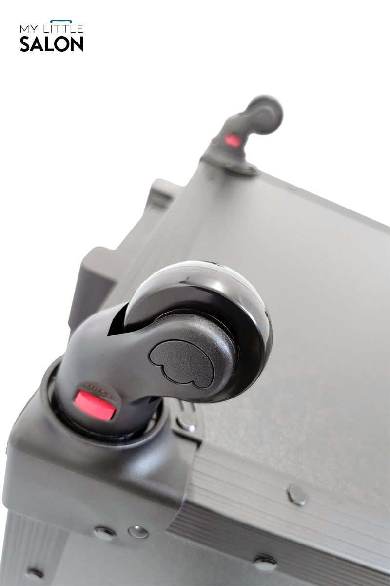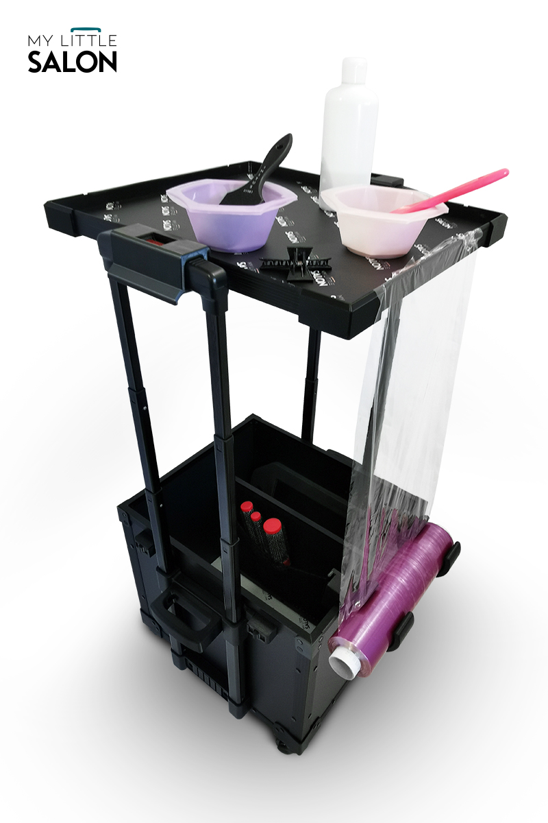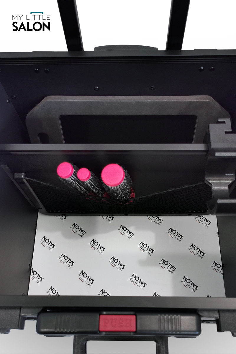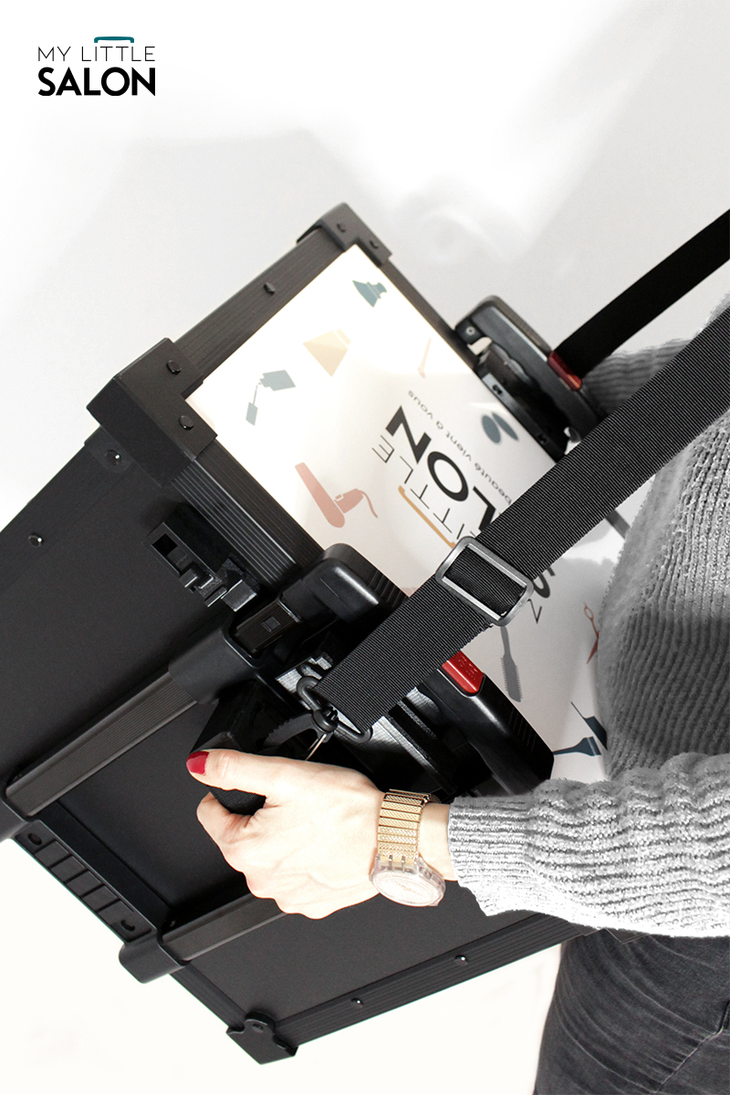 À la fois espace de rangement, trolley et tablette de travail, il est plus qu’un simple matériel de transport… un véritable salon de beauté mobile !