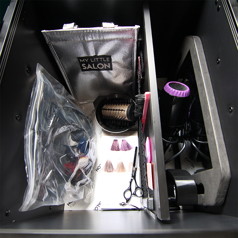 Parce que chaque professionnel a ses habitudes, ses besoins et ses techniques, My Little Salon s’accompagne d’une gamme d’accessoires en option pour personnaliser votre poste de travail mobile :